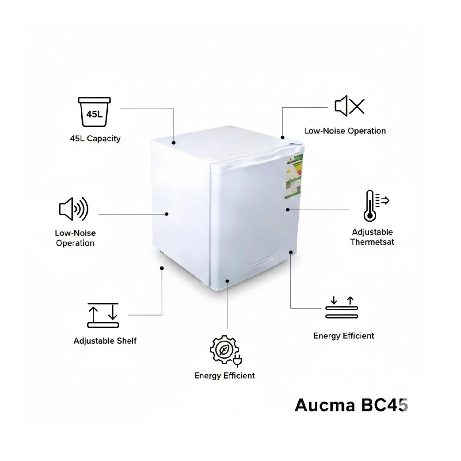Enjoy convenient cooling with the Aucma 45L Bar Fridge, a compact, energy-efficient refrigerator designed to keep your beverages and snacks fresh while saving space.