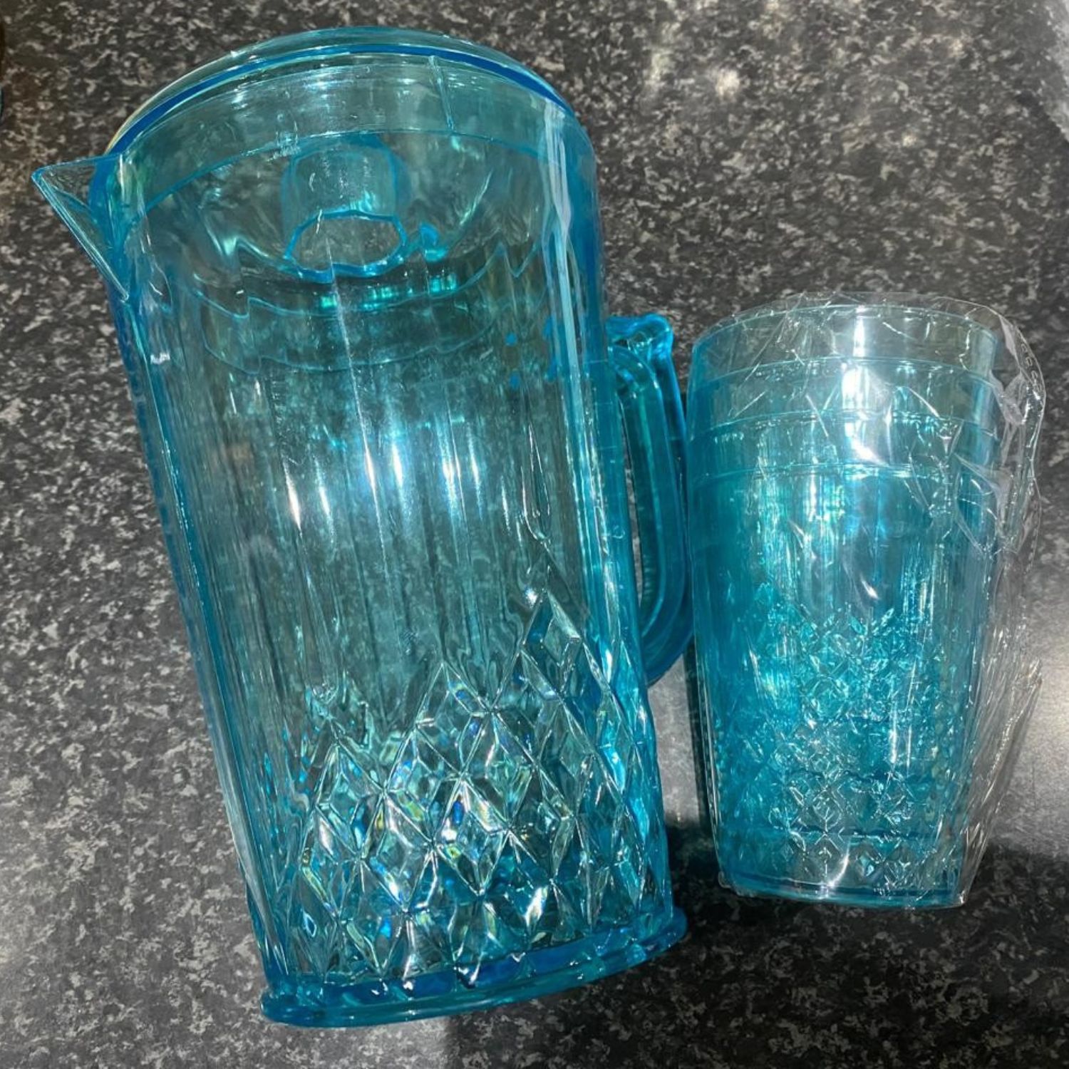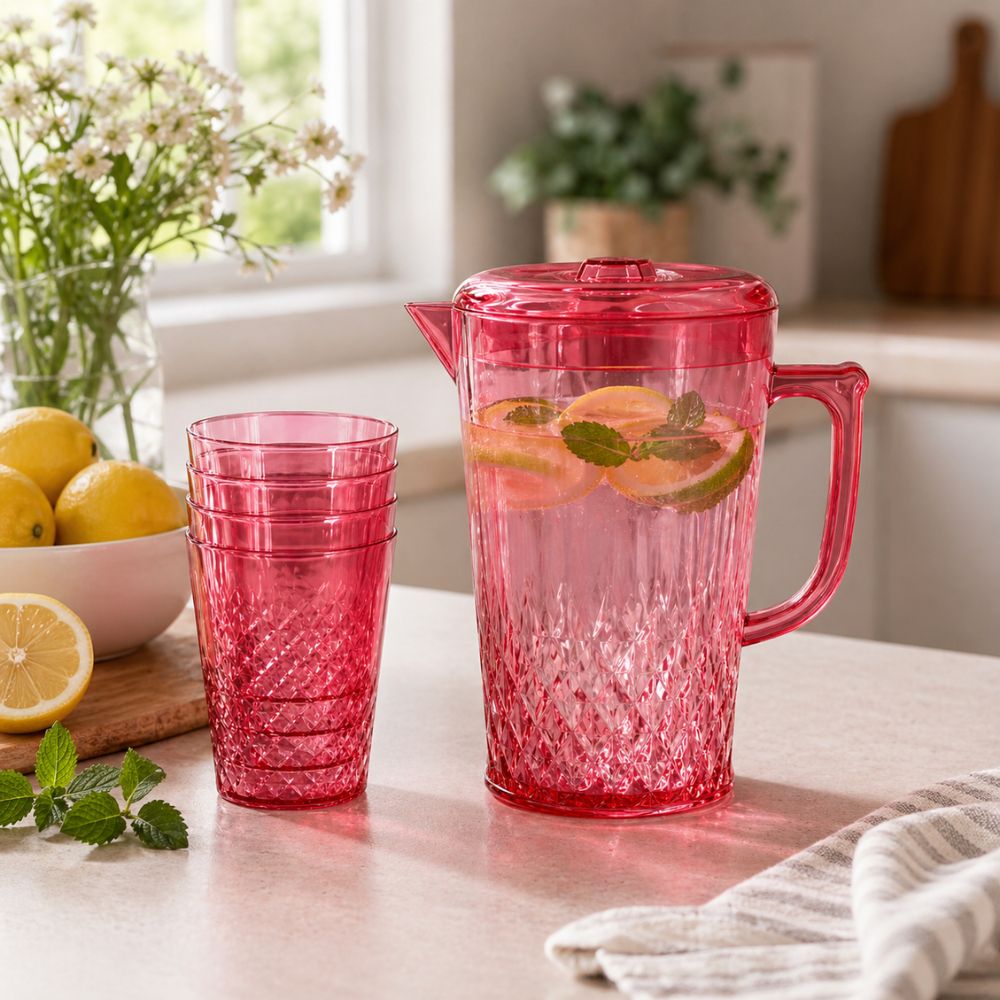 Made from high-quality, food-grade plastic, the pitcher is lightweight, durable, and easy to handle, making it ideal for daily use. The included four matching cups complete the set, giving you a convenient serving solution for family meals, guests, picnics, or parties.