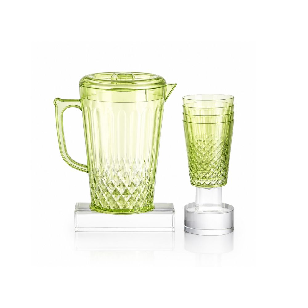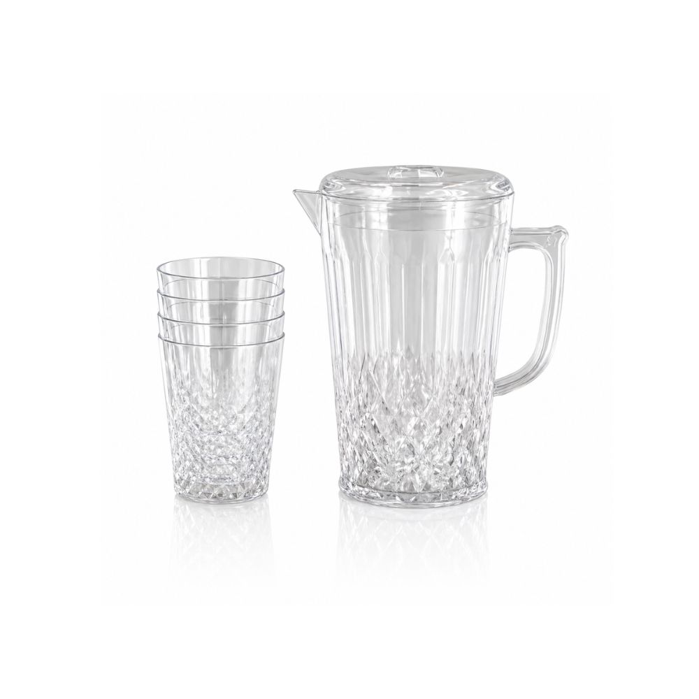 • Complete 5-piece drinkware set – 1 pitcher and 4 cups