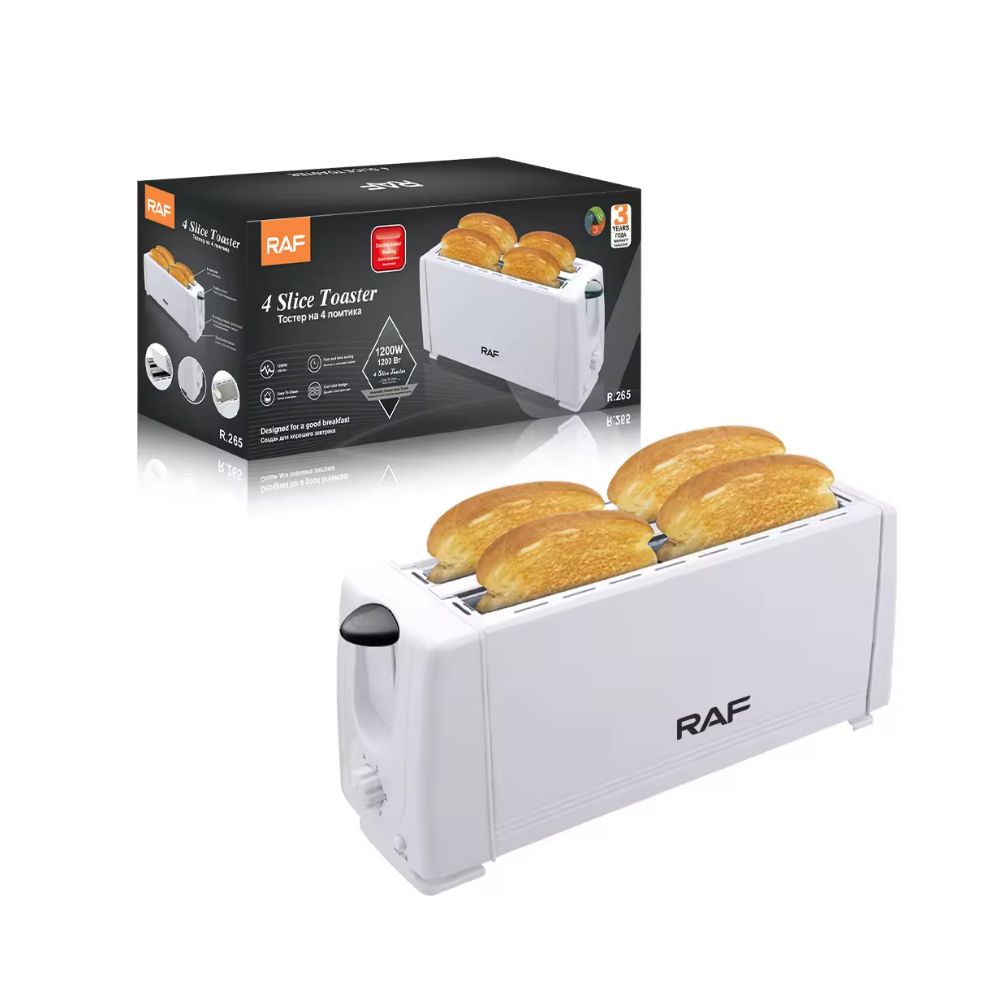 Start your mornings right with the RAF 4-Slice Toaster R265, designed for fast, efficient, and even toasting. With a powerful 1200W heating system and 4-slice capacity, this toaster is perfect for busy households, allowing you to prepare multiple slices at once.