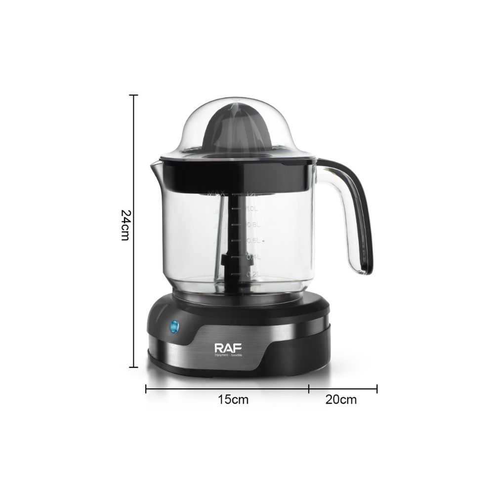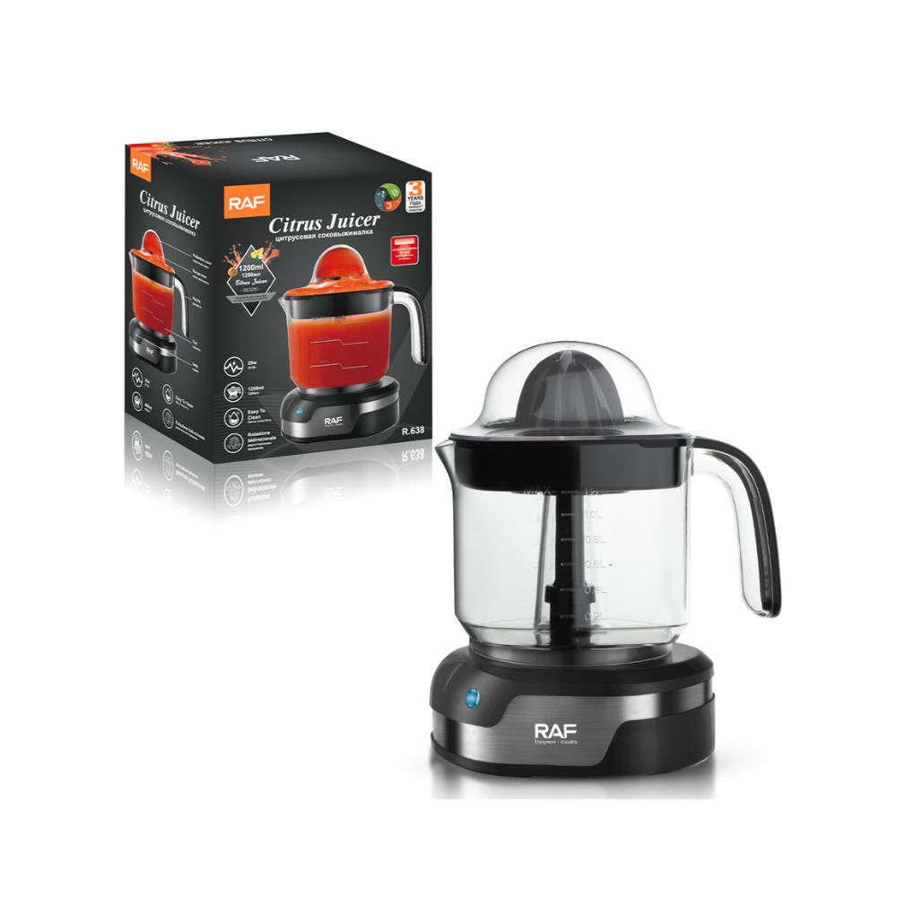 Enjoy freshly squeezed juice at home with the RAF Citrus Juicer R638, designed for simple operation, efficient juicing, and easy cleaning. With a 1200ml capacity and 25W motor, this citrus juicer is perfect for extracting juice from oranges, lemons, limes, and other citrus fruits.