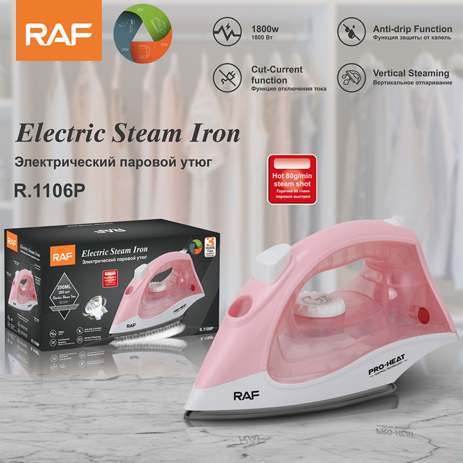 - 1 × RAF Electric Steam Iron R1106P