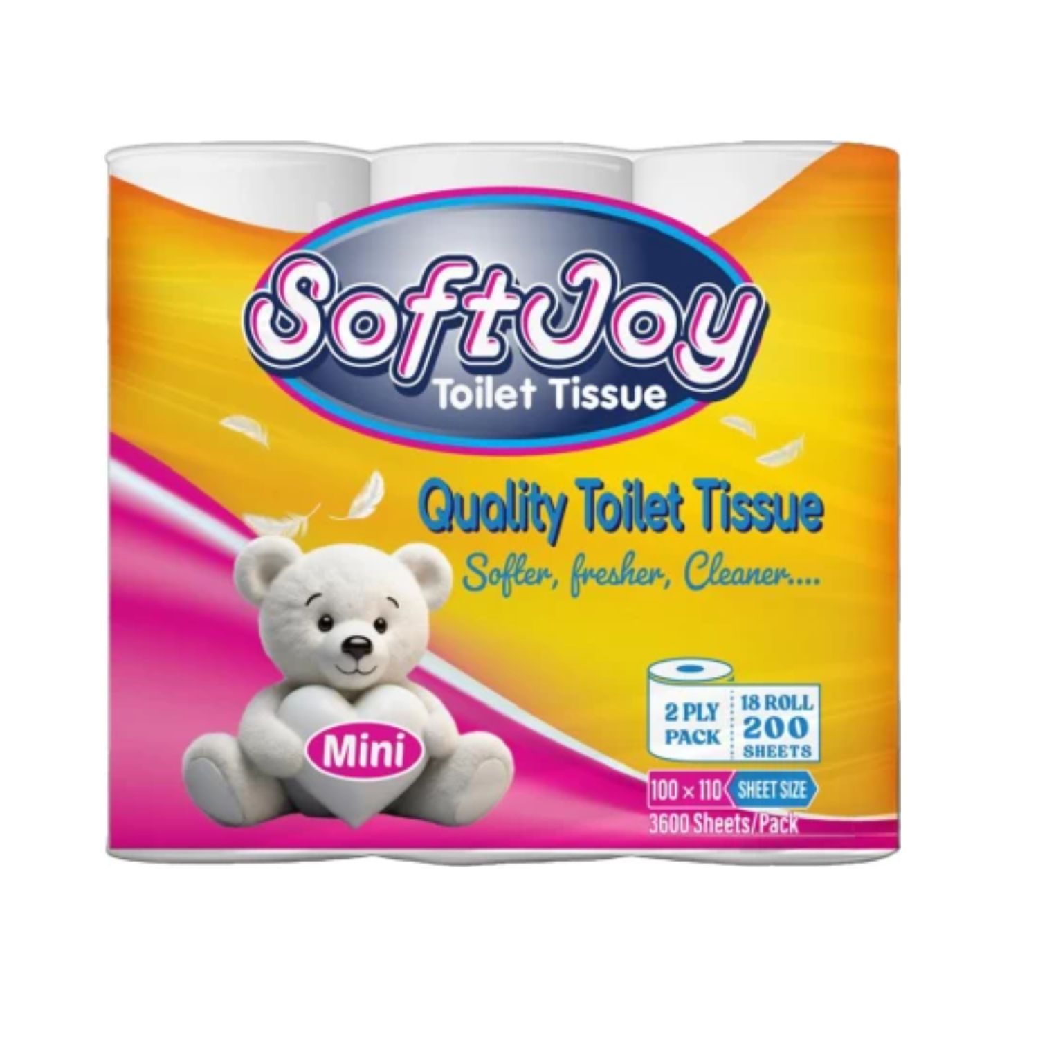 Made with 2-ply layered sheets, SoftJoy Mini Toilet Paper is soft on skin while remaining strong and absorbent for effective cleaning. The compact mini roll design is perfect for smaller dispensers and bathrooms with limited storage space, making it a practical choice for both residential and commercial use.